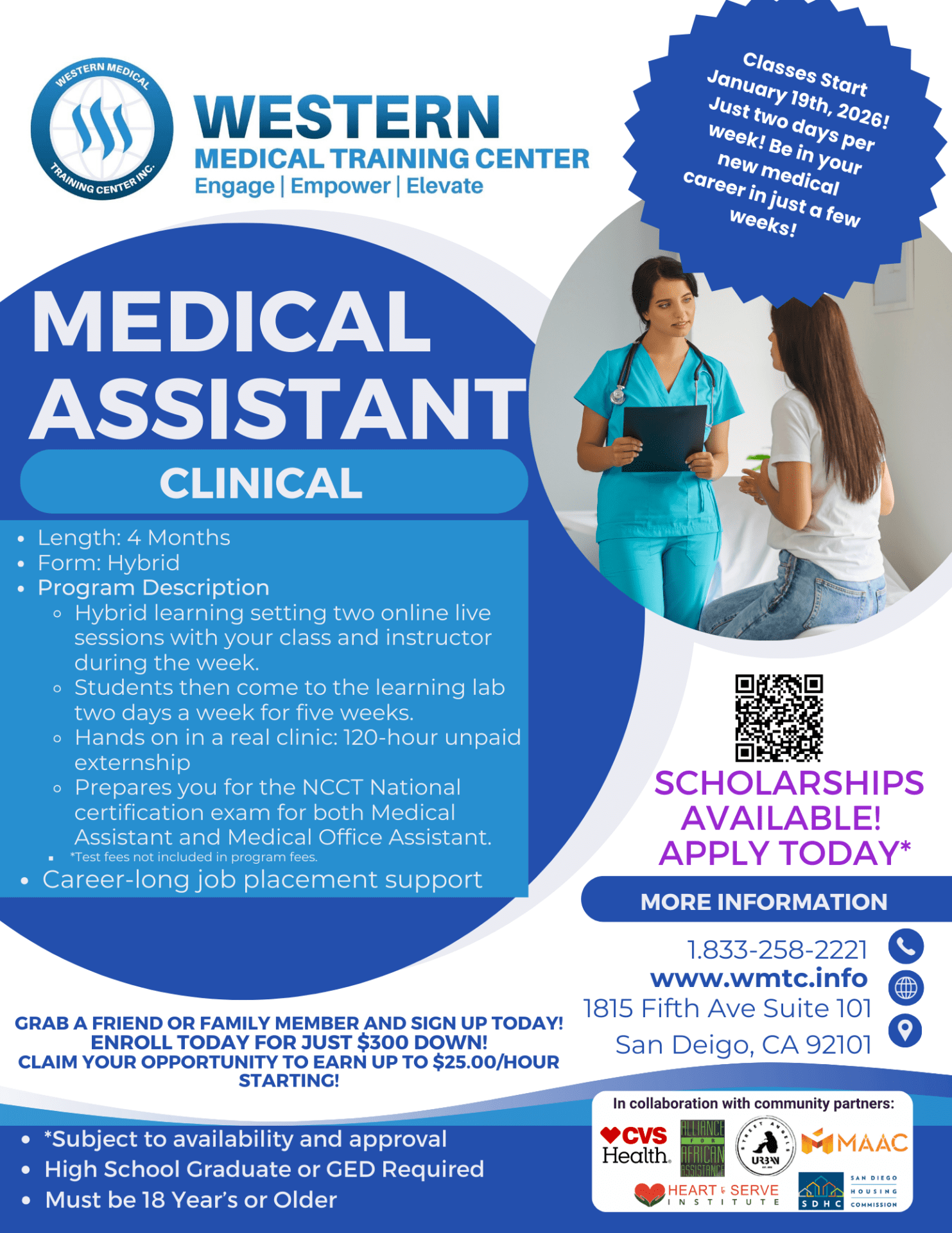 WMTC is partnered with NHA Medical Administrative Assistant Certification | CMAA. The curriculum, online experience, and certification support are provided by one of the nation’s leading accrediting institutions. This collaboration equips our students for career-long success in the medical field!