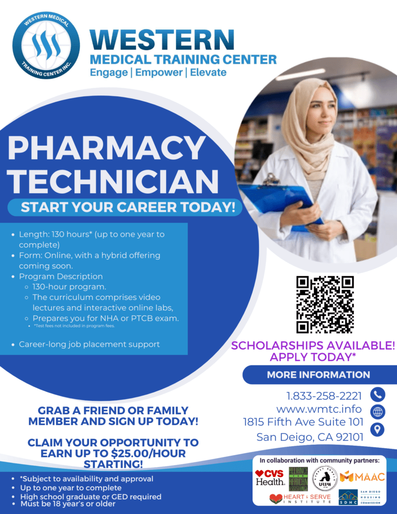 Our online Pharmacy Technician program is a 130-hour program. The program can be completed in just 30 days. The curriculum includes video lectures, demonstrations, and interactive online labs followed by a quiz. You have one year to complete the course online after your initial purchase date. Once all your requirements and hours have been completed, you will be eligible to sit for the NHA or PTCB exam. Once completing your theory and lab hours, you are also now eligible to complete an externship. This externship is not required but rather provides you with a different route to becoming certified. Essentially, instead of taking the NHA or PTCB exam, you can complete a 120-hour externship at a pharmacy of your choice. After completing your hours, you will then be eligible to apply for your license. You can also take either exam and complete an externship! There are a few pathways that you can pursue, and Western Medical Training Center is dedicated to helping you find the best fit for you!